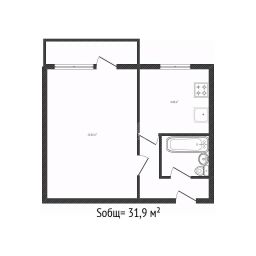 31,9 м², 1-комн., 3/4 этаж