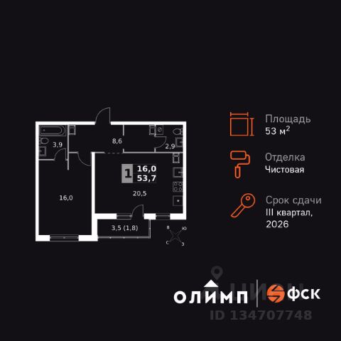 153 683 ₽/м²