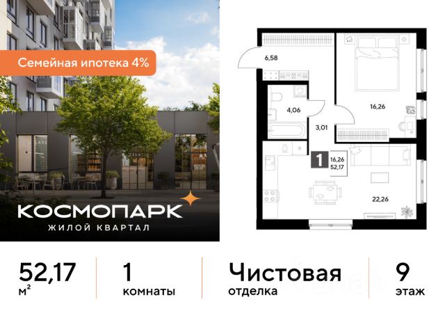 Продается 1-комнатная квартира 442 по адресу: Калужская область, Калуга. Общая площадь квартиры - 44.09 кв. м., этаж 9 из 21, секция 3. Тип проекта, по которому построен дом - монолит, компания-застройщик - DOGMA, ООО СЗ Д-Финанс. Стоимость квартиры - 7905337 Р. Срок сдачи - 1 квартал 2027. Более подробная информация по телефону. ВЫГОДНЫЕ УСЛОВИЯ: При покупке квартиры в ипотеку мы поможем правильно оформить заявку и подберем самые выгодные условия по ставке и первоначальному взносу. • Выгодные ипотечные ставки - семейная ипотека 4%.* • Рассрочка без первоначального взноса! Оформление на 1 год. Космопарк - уютный квартал комфорт-класса на левом берегу Оки. Расположен в развитом Ленинском районе Калуги, недалеко от центра города. Вокруг - живописные парки, музеи и чистые пляжи. ПРЕИМУЩЕСТВА: • Квартиры с видом на реку Оку • Разнообразные функциональные планировки • Потолки от 2,65 м • Умный дом с IP-домофонией • Закрытые дворы с всесезонным озеленением • Безопасная и безбарьерная среда • Кладовые с прямым доступом на лифте • Наземный паркинг на 1500 машино-мест • Собственный комьюнити-центр • Коммерческие помещения на первых этажах • 4 минуты до ТЦ "Салтыковский" • Рядом школа и детский сад Сочетание городского комфорта с природным окружением. Выгодное расположение, развитая социальная инфраструктура и отличная транспортная доступность. Квартира от застройщика. *СЕМЕЙНАЯ ИПОТЕКА: - Ставка 4% на весь срок кредита - ПСК (полная стоимость кредита) от 6,302% до 24,633% годовых. - Срок кредита - от 5 до 30 лет. - Минимальный первоначальный взнос - от 20,01%. - Досрочное погашение кредита возможно в любой момент без штрафов. - Стоимость квартиры фиксируется на весь срок кредитования.