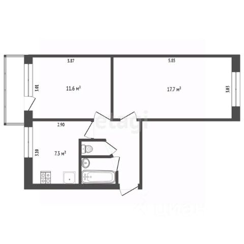 • ✅ Минимальная площадь: 34,1 м²