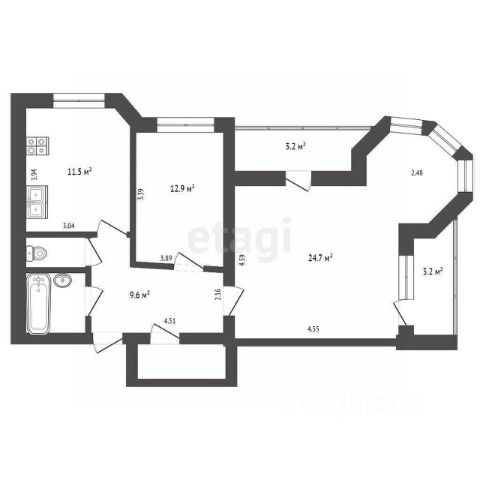 - кухня 14,6 кв.м и комната 14,3 соединены в кухню- гостиную, изолированная спальня 18,6 кв м с двумя окнами.