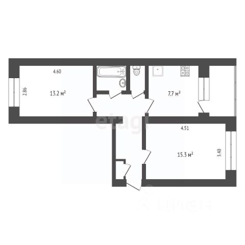 • ✓ В базе Циан 1 2-комнатных квартир на 5 этаже в микрорайоне Калуга-2 в городе Калуга