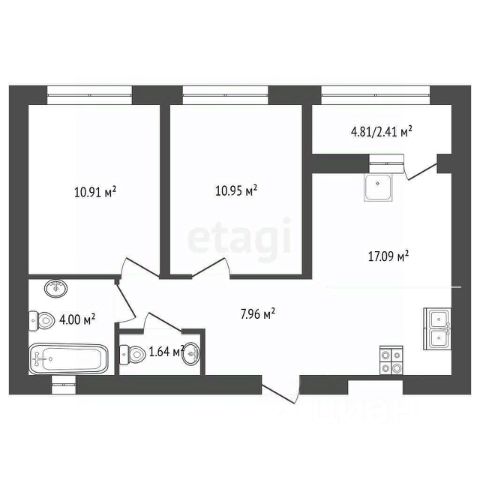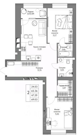 Функциональная планировка квартиры, изолированные комнаты расположены по обе стороны от кухни, площадью квартиры с учётом балкона составляет 45,9 кв. м., две уютные комнаты - 16, 4 кв. м. и 13,8 кв. м., коридор 4,3 кв. м. с системой хранения вещей, совместный санузел 3,1 кв. м., кухня 5,5 кв. м.