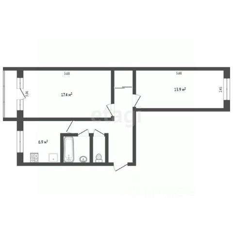 Общая площадь 51.4 кв.м, квартира находится на 7 этаже 9ти этажного панельного дома.