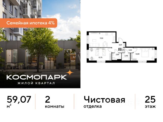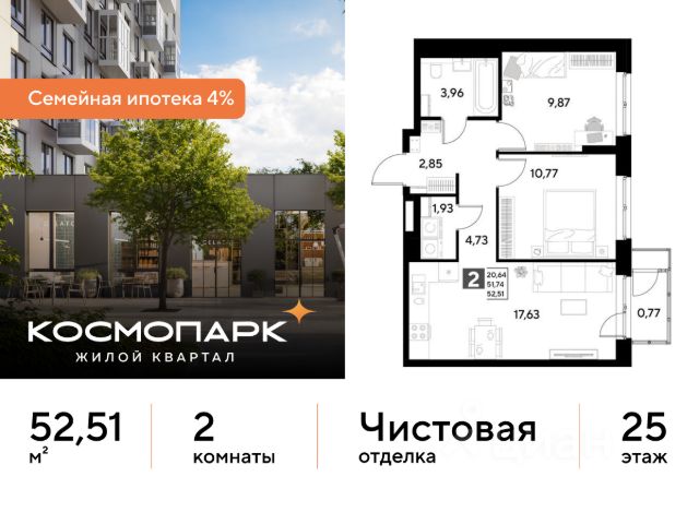 Продается 2-комнатная квартира 383 по адресу: Калужская область, Калуга. Общая площадь квартиры - 56.72 кв. м., этаж 25 из 25, секция 2. Тип проекта, по которому построен дом - монолит, компания-застройщик - DOGMA, ООО СЗ Д-Финанс. Стоимость квартиры - 8230072 Р. Срок сдачи - 1 квартал 2027. Более подробная информация по телефону. ВЫГОДНЫЕ УСЛОВИЯ: При покупке квартиры в ипотеку мы поможем правильно оформить заявку и подберем самые выгодные условия по ставке и первоначальному взносу. • Выгодные ипотечные ставки - семейная ипотека 4%.* • Рассрочка без первоначального взноса! Оформление на 1 год. Космопарк - уютный квартал комфорт-класса на левом берегу Оки. Расположен в развитом Ленинском районе Калуги, недалеко от центра города. Вокруг - живописные парки, музеи и чистые пляжи. ПРЕИМУЩЕСТВА: • Квартиры с видом на реку Оку • Разнообразные функциональные планировки • Потолки от 2,65 м • Умный дом с IP-домофонией • Закрытые дворы с всесезонным озеленением • Безопасная и безбарьерная среда • Кладовые с прямым доступом на лифте • Наземный паркинг на 1500 машино-мест • Собственный комьюнити-центр • Коммерческие помещения на первых этажах • 4 минуты до ТЦ "Салтыковский" • Рядом школа и детский сад Сочетание городского комфорта с природным окружением. Выгодное расположение, развитая социальная инфраструктура и отличная транспортная доступность. Квартира от застройщика. *СЕМЕЙНАЯ ИПОТЕКА: - Ставка 4% на весь срок кредита - ПСК (полная стоимость кредита) от 6,302% до 24,633% годовых. - Срок кредита - от 5 до 30 лет. - Минимальный первоначальный взнос - от 20,01%. - Досрочное погашение кредита возможно в любой момент без штрафов. - Стоимость квартиры фиксируется на весь срок кредитования.