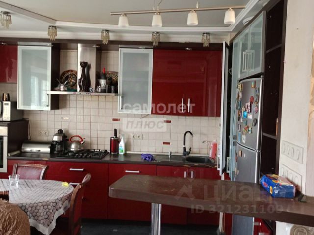 Гостиная: 31 кв. м, панорамные окна выходят на частный сектор, очень светлая, на полу керамогранит, водяные теплые полы подогреваются от газового котла фирмы BOSH. Сложные натяжные потолки с красивой подсветкой и дизайнерскими люстрами позволяют создавать комфортное освещение в любое время суток в любой зоне гостиной. Современный стильный и эргономичный кухонный гарнитур с каменной столешницей позволяет хозяйке решать любые задачи без хлопот.