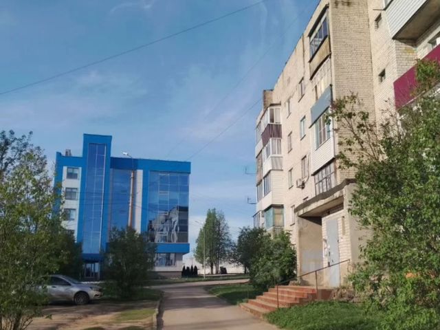 Детская игровая площадка во дворе. Парковочные места около дома.