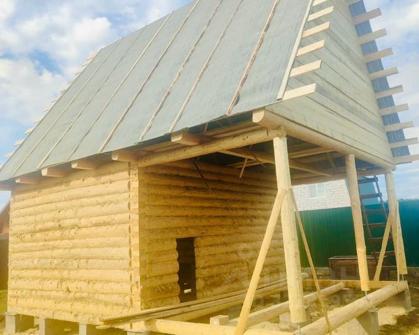 Сруб бани, размером 5м на 4м+2,5м выпуски, рубленный в "Лапу", протёсанный внутри (полулафет) ошкуренный рубанком, с крышей, высотой 4м, под второй этаж. В комплекте 2 двери, 2 окна. Фундамент - из бетонных блоков. Общая высота сруба -2,5м, плюс 4м - крыша второго этажа. Полное описание сруба смотрите на прилагаемых фото.