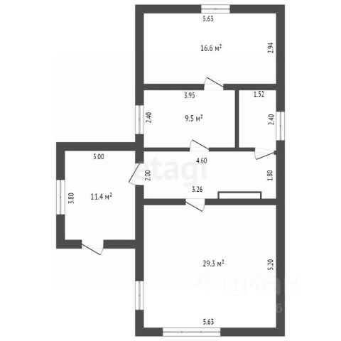 Простор в доме достигается как площадью помещений, так и высокими трехметровыми потолками. В доме много солнечного света из-за большого количества окон (остекление необходимо будет ставить самостоятельно). На первом этаже предусмотрены следующие помещения: Кухня - гостиная почти 30м2, 2 жилые комнаты (26 и 17 м2), просторная гардеробная 8,6 м2, санузел, бойлерная, просторный холл.