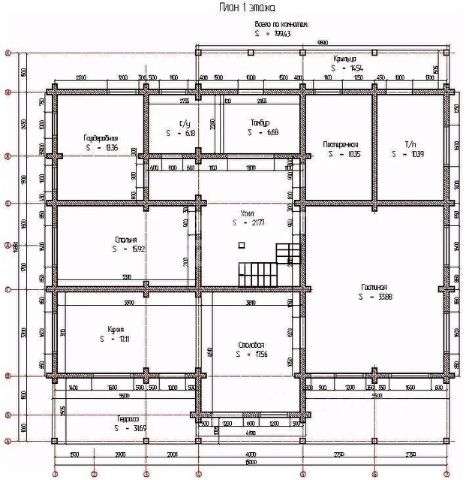 1 этаж: прихожая, центральный холл, гостиная, кухня-столовая, санузел, кладовая, спальня, комната для хранения с большим подвалом, топочная.
