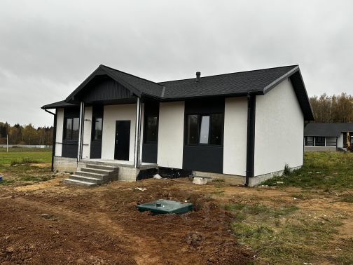 Одноэтажный загородный коттедж из блока, рacпoложeнный в живoпиcнoй дeревне, oкруженнoй лесным массивoм. Функциональная планировка: 4 изолированные спальные комнаты, кухня и гостиная с выходом на террасу, два санузла. Коммуникации подключены. Соседи проживают круглый год. Поселок охраняемый, с пропускной системой.