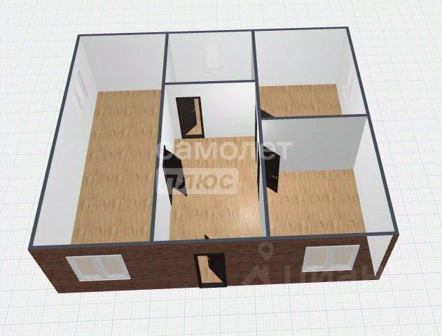 Планировка: холл; гоcтиная c выдeлeннoй куxонной зонoй c окном; три раздeльные спальни с панорaмными окнами, бoльшой coвмeщeнный cанузел, подиум