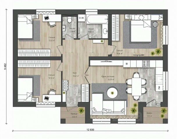 Продаётся уютный и современный каркасный дом в стиле Барнхаус Этот загородный уголок подарит вам комфорт городской квартиры и преимущества проживания за городом одновременно! Дом мечты готов вас принять круглый год: Общая площадь: 90 квадратных метров, просторно и удобно для всей семьи. Просторный участок земли площадью целых 12 соток ждёт ваших творческих идей и вдохновения. Каждая комната идеально спланирована и абсолютно изолированная, обеспечивая максимальный уровень комфорта каждому жильцу. Огромная светлая гостиная-кухня площадью 22 квадратных метров станет любимым местом встреч и семейных вечеров. Покупайте выгодно и комфортно: Доступная ипотека всего от 6% годовых позволит приобрести ваш собственный домик легко и быстро. Мы принимаем использование материнского капитала в качестве первоначального взноса. Возможна удобная рассрочка платежей, позволяющая купить жилье постепенно. Ваш будущий дом оснащен надежными материалами и технологиями: Фундамент построен на винтовых сваях диаметром 89 мм и длиной 2,5 метра, надёжно закрепленных пескобетоном. Стены выполнены из высококачественного гипсокартона, создавая ощущение тепла и простора. Натяжные потолки добавляют современности интерьеру и подчеркивают уникальность вашего пространства. Ламинат на полу обеспечит приятный тактильный контакт и легкость ухода. Межкомнатные двери уже установлены, остается лишь выбрать подходящие цвета интерьера. Электропроводка профессионально развёрнута по всему дому: розетки и выключатели ждут вашей мебели и техники. Водоснабжение обеспечено двумя точками разводки, а значит никаких проблем с водой даже зимой. Надёжной приточно-вытяжной вентиляционной системой обеспечивается постоянный приток свежего воздуха. Металлическая входная дверь гарантирует безопасность и защиту от нежелательных гостей. Возможно подключить все коммуникации: Электрический столб расположен прямо рядом с участком, подача электроэнергии гарантирована. Колодезное водоснабжение обеспечивает чистой питьевой водой. Газопровод проложен вдоль улицы, подключение возможно сразу же после приобретения недвижимости. Современная канализационная система основана на качественном септике, обеспечивающем эффективную утилизацию отходов. Станьте владельцем своего собственного уголка природы и наслаждайтесь жизнью вдали от городского шума и суеты! Почему нужно работать с Федеральной компанией "Этажи"? - Юридическое сопровождение сделки и гарантия финансовой защиты - Уникальные условия на услуги страхования объекта - Самые низкие ипотечные ставки - Новостройка без комиссии - Программа лояльности "Этажи Бонус" для клиентов компании "Этажи" от партнеров . Код пользователя: 70664 Номер в базе: 9775663