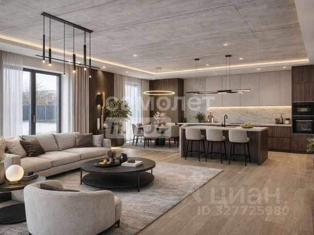 Особое внимание привлекают оригинальные панорамные окна гостинной со вторым светом. Это создает невероятную атмосферу гармонии, ощущение воздуха, легкости и простора.