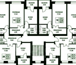 Общая площадь квартиры - 42,4 кв.м (с учетом лоджии 7,5 кв.м, без нее по ЕГРН - 34,9 кв.м). Одна из самых удобных планировок в 1-к квартирах: