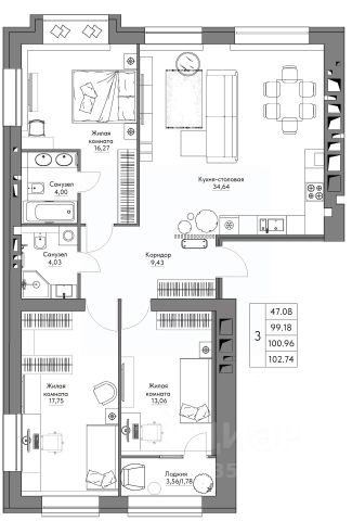 102 667 ₽/м²