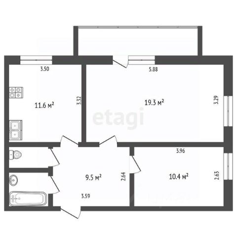 Общая площадь 51.4 кв.м, квартира находится на 7 этаже 9ти этажного панельного дома.