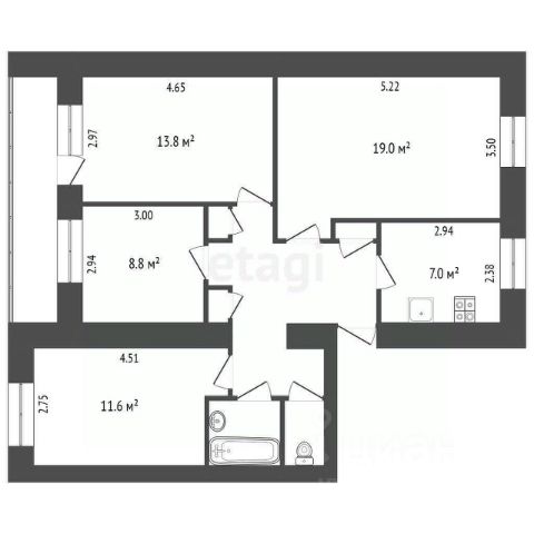 -Общая площадь: 75.5 м²