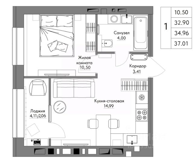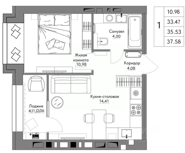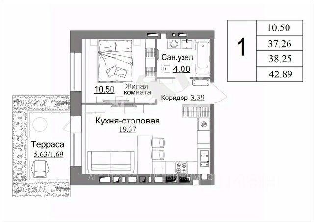 Общая площадь квартиры 37.61кв м
