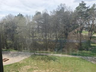 Окна квартиры выходят во двор. Во дворе : детская площадка ,парковка, лес.