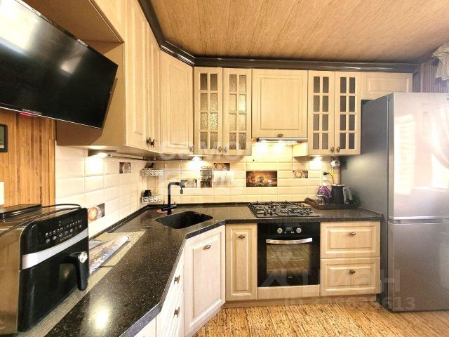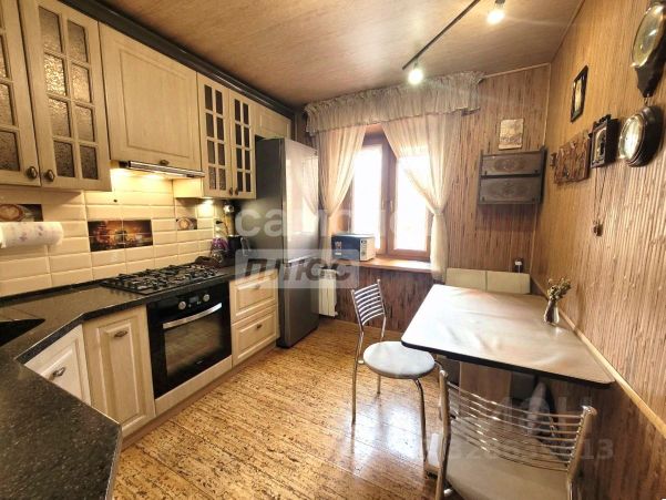 Кухня 9,5 кв.м, при продаже остается встроенная кухня, посудомоечная машина, варочная поверхность, духовой шкаф, холодильник.