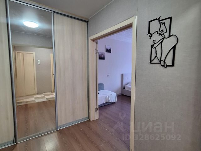 Большая прихожая, вместительные встроенные шкафы остаются при продаже. Комната 20 кв.м, удобной квадратной формы, кровать и кондиционер так же остаются при продаже.