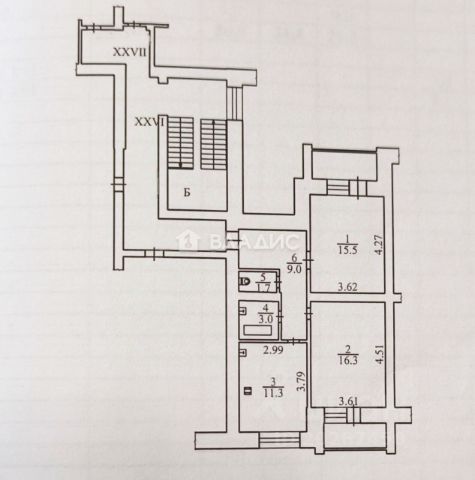 Площадь комнат 15,5 и 16,3 кв.м.