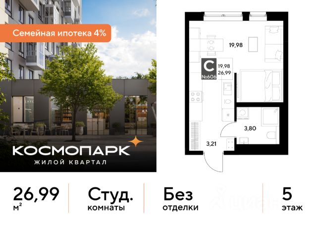 Продается студия 741 по адресу Калужская область, Калуга. Общая площадь квартиры - 26.99 кв. м., этаж 14 из 25, секция 4. Тип проекта, по которому построен дом - монолит, компания-застройщик - DOGMA, ООО СЗ Д-Финанс. Стоимость квартиры - 4588300 Р. Срок сдачи - 1 квартал 2027. Более подробная информация по телефону. ВЫГОДНЫЕ УСЛОВИЯ: При покупке квартиры в ипотеку мы поможем правильно оформить заявку и подберем самые выгодные условия по ставке и первоначальному взносу. • Выгодные ипотечные ставки - семейная ипотека 4%.* • Рассрочка без первоначального взноса! Оформление на 1 год. Космопарк - уютный квартал комфорт-класса на левом берегу Оки. Расположен в развитом Ленинском районе Калуги, недалеко от центра города. Вокруг - живописные парки, музеи и чистые пляжи. ПРЕИМУЩЕСТВА: • Квартиры с видом на реку Оку • Разнообразные функциональные планировки • Потолки от 2,65 м • Умный дом с IP-домофонией • Закрытые дворы с всесезонным озеленением • Безопасная и безбарьерная среда • Кладовые с прямым доступом на лифте • Наземный паркинг на 1500 машино-мест • Собственный комьюнити-центр • Коммерческие помещения на первых этажах • 4 минуты до ТЦ "Салтыковский" • Рядом школа и детский сад Сочетание городского комфорта с природным окружением. Выгодное расположение, развитая социальная инфраструктура и отличная транспортная доступность. Квартира от застройщика. *СЕМЕЙНАЯ ИПОТЕКА: - Ставка 4% на весь срок кредита - ПСК (полная стоимость кредита) от 6,302% до 24,633% годовых. - Срок кредита - от 5 до 30 лет. - Минимальный первоначальный взнос - от 20,01%. - Досрочное погашение кредита возможно в любой момент без штрафов. - Стоимость квартиры фиксируется на весь срок кредитования.