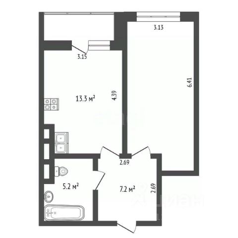 -Общая площадь: 58 м²
