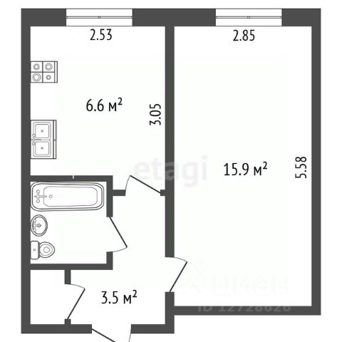-Общая площадь: 32.8 кв.м. — компактное и рациональное пространство.
