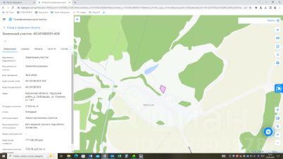 Кадастровый номер 40:20:051503:0022, площадь 58944 +/- 2124 м2;