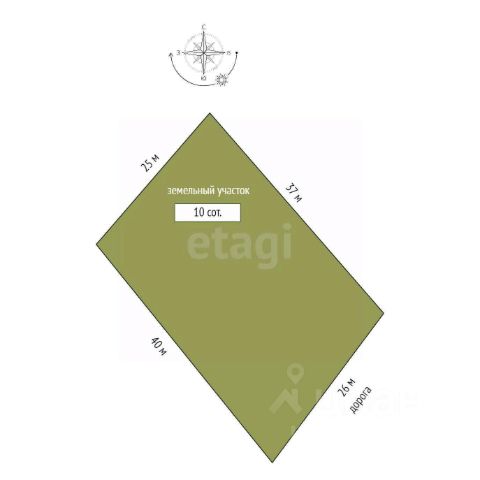 -Площадь: 10 соток правильной прямоугольной формы.