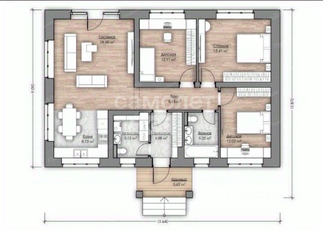 В доме сделан современный ремонт из высококачественных материалов.