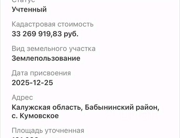 На участке старый дом (одноэтажный, площадь 52 кв. метра) под снос. Можно использовать для временного хранения каких-то необходимых вещей, инструмента. Есть сарай с капитальным погребом. Кадастровый номер участка 40:15:140204:56
