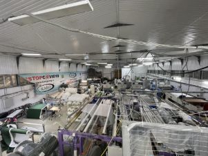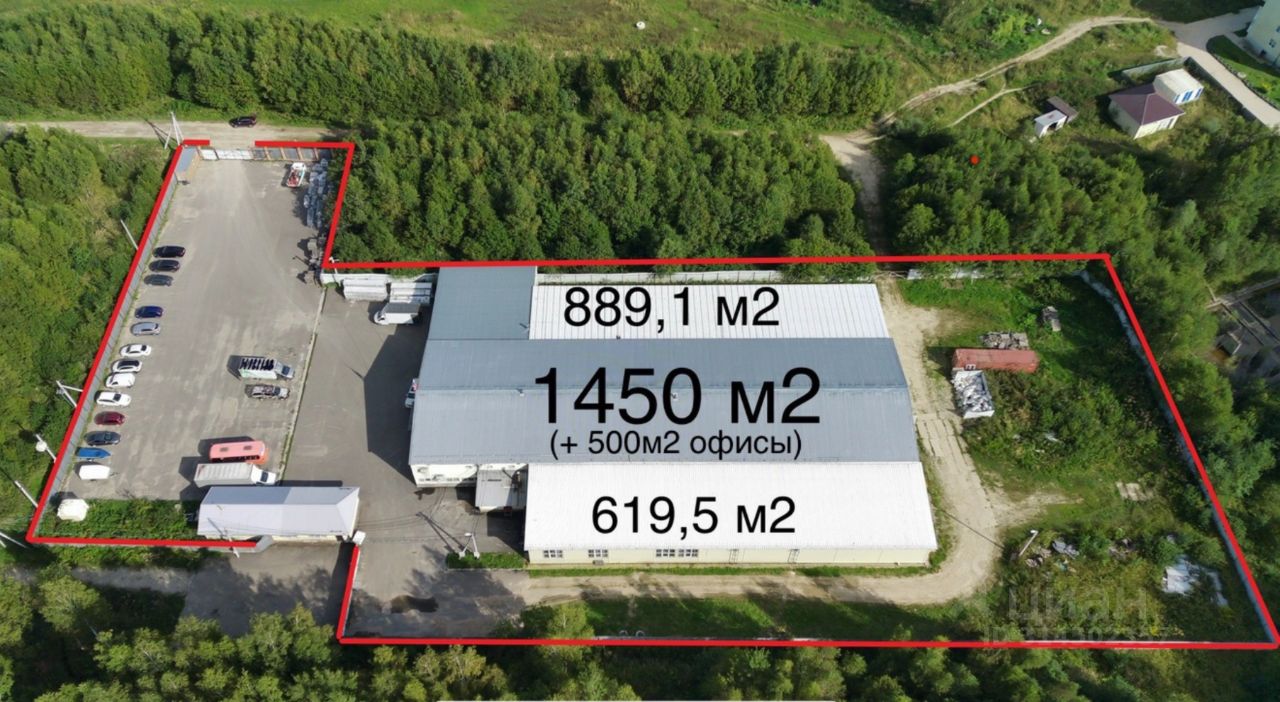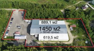 - Центральное здание, общей площадью 1450 кв.м, + 500 кв.м. офисных площадей; построено из газобетонных блоков, назначение: нежилое. Год строительства: 2014. Состоит из производственного цеха и офисной части. Высота здания: по стенам 6м, в коньке 8м.