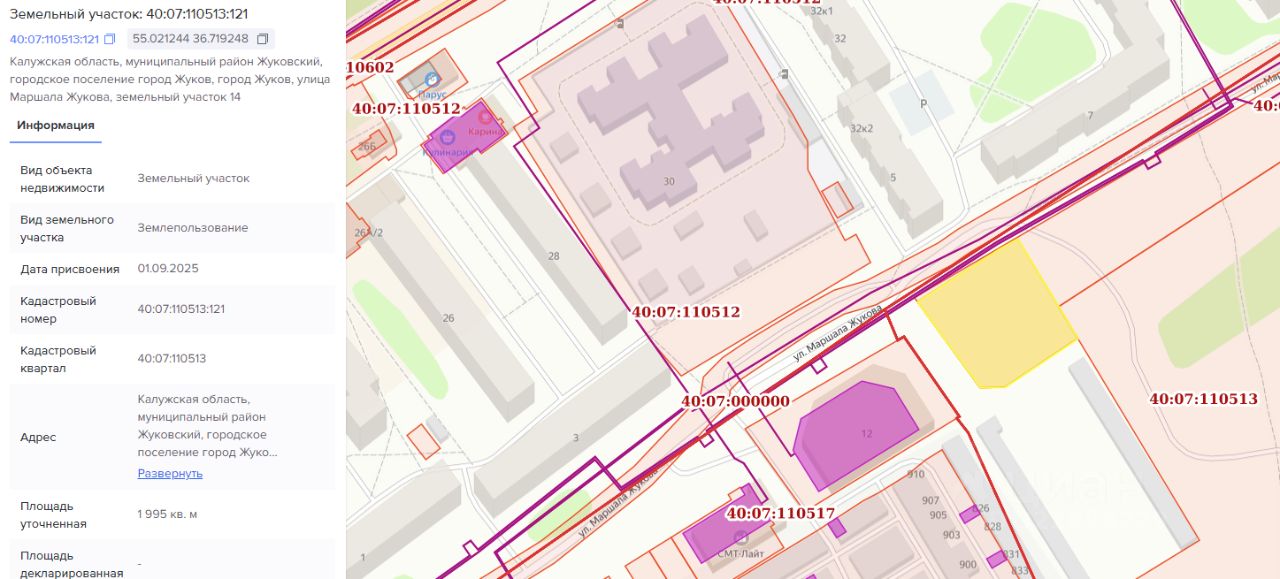 право заключения договора аренды земельного участка из земель населенных пунктов, с разрешенным использованием: предпринимательство, с кадастровым номером 40:07:110513:121, площадью 1995 кв.м, адрес в соответствии с ФИАС: Калужская область, муниципальный район Жуковский, городское поселение город Жуков, улица Маршала Жукова, земельный участок 14