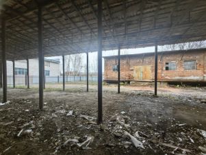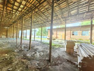 Здание нуждается в ремонте, однако участок огорожен и имеет большой навес высотой 6 метров.