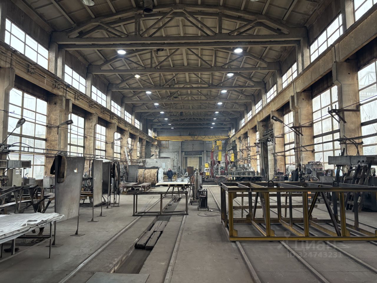 -Основной теплый цех- 1900 кв метров с высотой 12,5 метров и рельсовым краном 10 тонн и кран балкой 5 тонн(управление с пола) , 9 метров до фермы. Нагрузка на пол 3-5 тонн на кв метр , стены бетонные панели и много окон.