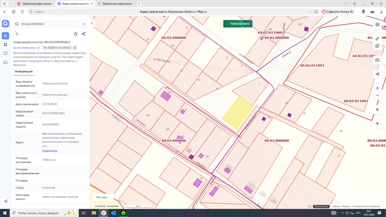 Лот 2- на право заключения договора аренды земельного участка из земель населенных пунктов, вид разрешенного использования для ведения личного подсобного хозяйства (приусадебный земельный участок), с кадастровым номером: 40:02:011000:863, площадью 1 500 +/-14 кв.м, местоположение: местоположение установлено относительно ориентира, расположенного в границах участка. Почтовый адрес ориентира: Калужская область, Барятинский район, с. Милятино