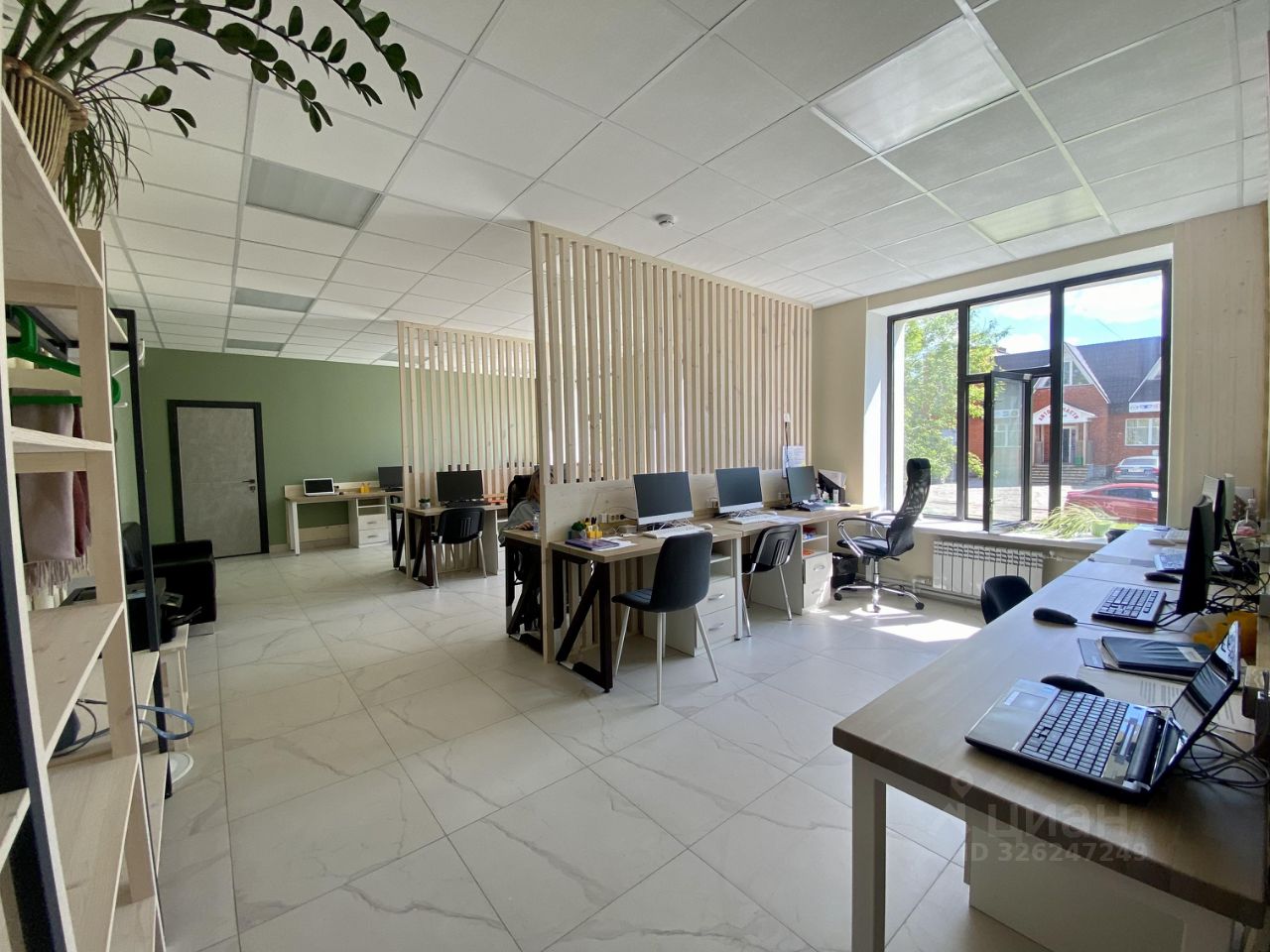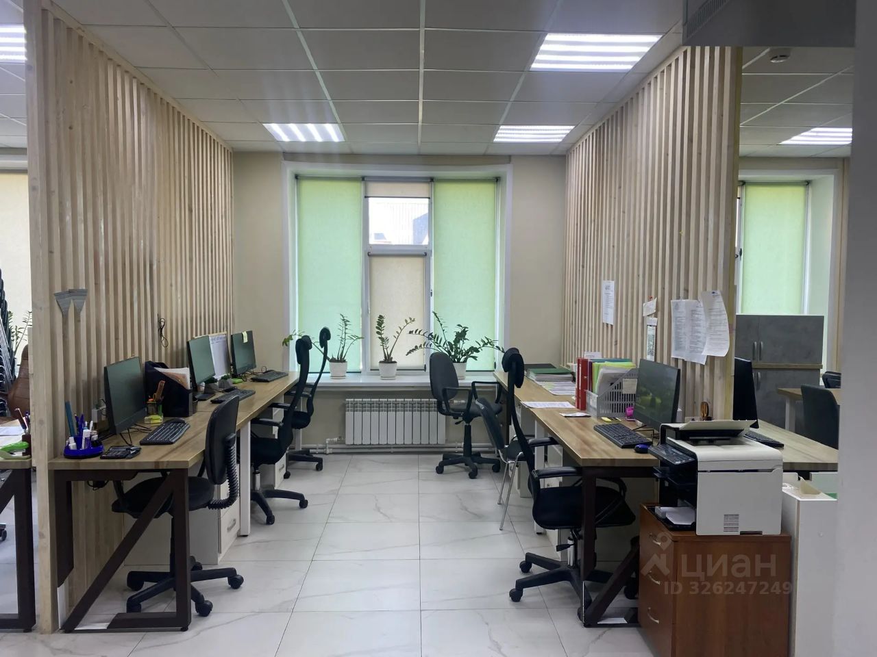 Офис расположен на 1м этаже, это большой просторный open-space. Есть оборудованные рабочие места: установлен за каждым моно-блок, стул, тумба для всех принадлежностей, есть принтер, серверная. В стоимость аренды входит электричество, интернет. Раковина, туалет общественные.