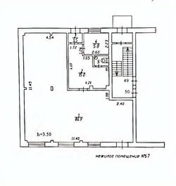 В помещении имеется торговый зал (можно поделить на несколько отделов), подсобное помещение с сан.узлом, складом и вторым выходом для разгрузки товара.