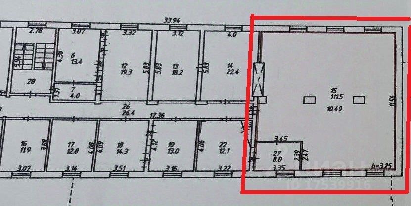 - высота потолков 3,25м;