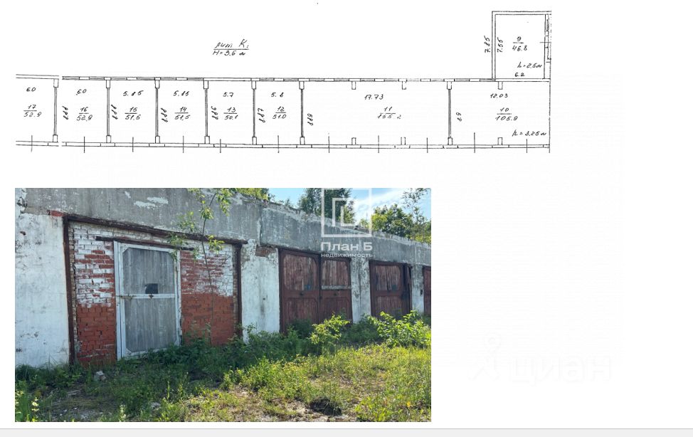 7. Боксы 60 - 120м2. Ранее использовались как гаражи под ремонт и стоянку грузовиков. Высота потолков 3600мм. Полы бетонные, перед боксами уложено твердое покрытие. СТОИМОСТЬ - 250р/м2