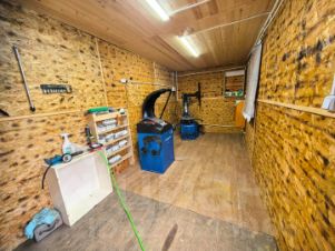 По всей площадке асфальт(укладывается на момент публикации объявления). Электричество проведено 15кВт. Вода -скважина, канализация-септик. На участке установлены готовый шиномонтаж со всем оборудованием и рядом офисное помещение.