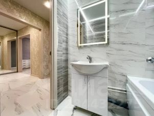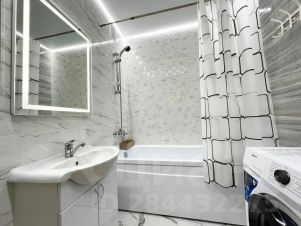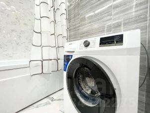 Просторная ванная комната, стиральная машина.