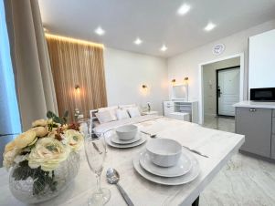 Сдается квартира-студия в тихом центре, в новом многоэтажном домe 2023 года постройки, расположенном в 5 минутах езды на машине от центра города. С новым и качественным ремонтом.