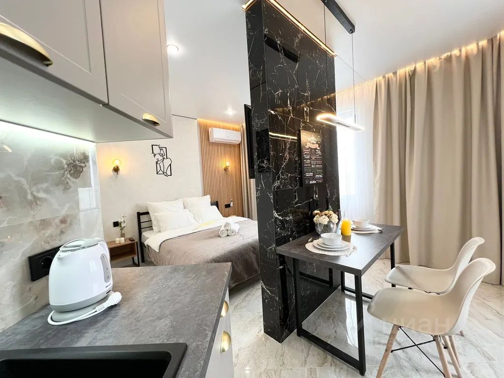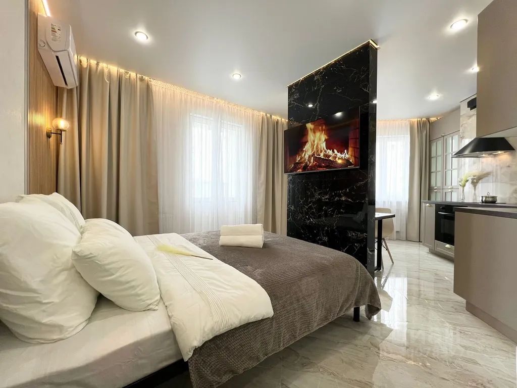 Сдается квартира-студия в тихом центре, в новом многоэтажном домe 2023 года постройки, расположенном в 5 минутах езды на машине от центра города. С новым и качественным ремонтом. Имеется Smart TV!