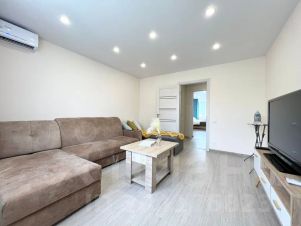 В квартире современная мебель, новая сантехника, натяжные потолки, стеклопакеты, хорошая шумоизоляция, фен, утюг, гладильная доска, сушилка для белья, стиральная машина. Есть все необходимое для проживания.