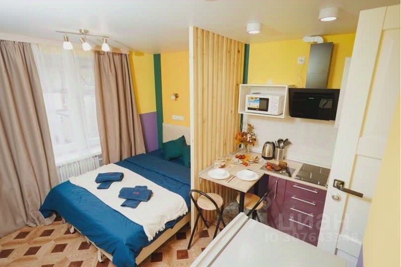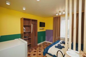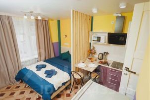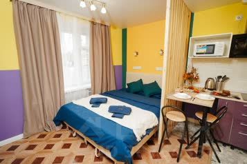 Друзья - это маленькая и яркая квартира-студия, которая находится в Обнинске на улице Курчатова. В интерьере этой студии преобладают яркие и насыщенные цвета, которые создают веселую и жизнерадостную атмосферу. Основное пространство студии занимает зона сна и отдыха, где расположена двуспальная кровать и телевизор на стене. Рядом со спальным местом находится шкаф для одежды. Кухонная зона отделена от спальни стильной деревянной перегородкой. Кухня оборудована всем необходимым для приготовления еды: есть плита, микроволновая печь, холодильник и даже стиральная машина. Обеденная зона представлена компактным столом и стульями для комфортного приема пищи. Санузел в квартире Друзья совмещенный. Он оборудован душевой кабиной, туалетом и раковиной с зеркалом. Все элементы сантехники и мебели подобраны в тон ярким стенам, что создает единый стиль интерьера. Студия оснащена интернетом и цифровым телевидением для комфортного проживания и отдыха. Общая площадь Друзей составляет около 20 квадратных метров и идеально подходит для молодых семей или студентов.