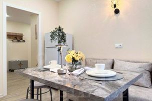 Сдается двухкомнатная квартира в тихом центре, в новом многоэтажном домe 2023 года постройки, расположенном в 5 минутах езды на машине от центра города. С новым и качественным ремонтом. В квартире два телевизора, современная мебель, новая сантехника, натяжные потолки, стеклопакеты, хорошая шумоизоляция, фен, утюг, гладильная доска, сушилка для белья, стиральная машина. Есть все необходимое для проживания. Кухня оснащена всеми необходимыми бытовыми приборами (холодильник, микроволновка, электрический чайник) и столовыми принадлежностями (кастрюли, сковорода, кружки, тарелки, столовые приборы). Цифровое телевидение, высокоскоростной безлимитный интернет (wi-fi). ? Ванная и туалет кафель, санузел раздельный.